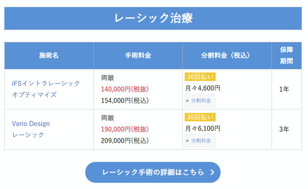 私は乱視などのオプションもありましたので、サイトに掲載されている金額からは少し高くなり、支払いは25万円でした。